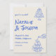 Save The Date Retro Blue Hand Drawn Champagne Tower Cake Wedding