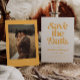 Rétro et élégant enregistrer la carte de date avec la police boho qui dit "enregistrer la date" en couleur jaune. Vous pouvez ajouter une photo au dos.