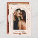 Surprenez vos proches avec cette carte moderne et élégante Save the Date, avec arche en terre cuite, script rétro, 2 photos et texte personnalisé de votre choix. Ajoutez facilement vos propres détails en cliquant sur l'option "personnaliser".