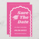 Fêtez votre prochaine remise de diplômes avec notre Retro Save The Date Card! Glamour et audacieux, cette carte d'enregistrement de date comporte une police rétro qui transportera les clients vers le les années 70, tandis que l'arc super ondulé ajoute une touche d'amusement et d'excitation. L'arrière - plan rose vif attire l'attention de tous, tandis que la police rose vif et blanche apporte une touche d'élégance. Le casquette diplômé ajoute une touche de sophistication à la conception, ce qui le rend parfait pour les diplômés du secondaire et du collège. Commandez maintenant et laissez les vibrations super s'écouler !
