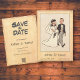 Save The Date Retro Whimsical Bride et Groom Comic Mariage de li
