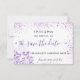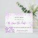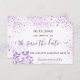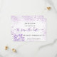 Une carte de Save the Date girly et tendance pour une fête d'anniversaire de 16 ans, Sweet 16. Un fond blanc élégant décoré de poussière de faux strass violette, lavande et une robe. Personnalisez et ajoutez une date et un nom/âge. Lettres noires et violettes. Le texte : Save the Date est écrit avec un grand script à la main tendance.
