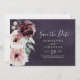 Cette prune romance florale horizontale enregistrer la carte de date est parfait pour un mariage élégant. Le design boho rustique moderne présente des fleurs d'aquarelle romantiques dans des tons doux de bordeaux, mauve, rose rousse et blanc crème avec des feuilles verts.