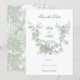 This classic design captures all the elegance and romance of 18th century France, and features an etched sage green floral wreath encircling a pair of nesting lovebirds. It is complemented by a subtle sage toile pattern featuring a classic landscape. Customize the opacity level of the graphics in the design editor, if desired.