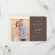 Cette carte de sauvegarde de date de mariage présente une mise en page divisée avec une photographie chaleureuse et candide de deux personnes dans un cadre extérieur d'un côté et un texte élégant sur un fond uni de l'autre. La palette de couleurs comprend des tons terreux comme le beige et le marron clair, créant une atmosphère harmonieuse et invitante. Le design combine la photographie numérique avec une typographie moderne et épurée, utilisant des polices de caractères script pour un côté personnel et des polices de caractères serif pour la clarté. L'ambiance générale est romantique et anticipative, parfaite pour célébrer une occasion spéciale avec style et sophistication.