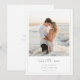 Annoncez votre mariage sur la plage avec cette romantique et sauvez la date ! Il dispose d'un cadre de bordure simple et d'un script élégant écrit à la main, présentant une belle photo de plage. Ce design moderne et abordable en noir et blanc en fait le moyen idéal de faire connaître à tout le monde votre mariage de destination spéciale.