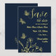 Mariage simple unique enregistrer la carte de date avec des fleurs et des papillons en or romantique et élégant sur arrière - plan de marine POUR PLUS DE PRODUITS CORRESPONDANTS cliquez sur la collection ci-dessus ou contactez-moi.