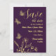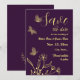 Mariage simple unique enregistrer la carte de date avec des fleurs et des papillons en or romantique et élégant sur arrière - plan violet POUR PLUS DE PRODUITS CORRESPONDANTS cliquez sur la collection ci-dessus ou contactez-moi.