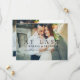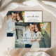 Un faire-part de mariage romantique et sophistiqué composé d'une seule photo avec le titre émouvant "At Last" (Enfin) superposé sur une photo de fiançailles en plein écran avec des détails en écriture cursive en dessous. Le panneau arrière coordonné associe une photo en portrait avec la date du mariage, le lieu et le site web dans une mise en page propre et divisée. Le design intemporel en noir et blanc équilibre la chaleur émotionnelle avec une élégance minimaliste moderne. Tous les textes et photos sont entièrement personnalisables.