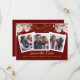 Trois de vos photographies de couple sont mises en valeur sur un fond bordeaux. Des roses roses et des guirlandes lumineuses créent une bordure supérieure élégante.