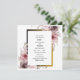 Faire-part de mariage élégant aux roses roses et brunes, un mélange parfait d'élégance intemporelle et de sophistication moderne. Caractérisé par une délicate guirlande florale à l'aquarelle avec des pivoines, des roses et de la verdure d'eucalyptus dans des tons bleu marine, vert et ivoire. La boîte imprimée argent-gris en dessous ajoute une touche contemporaine, tandis que le design double face assure un thème cohérent partout. Fabriquée sur du papier cartonné de qualité supérieure, cette invitation est entièrement personnalisable, ce qui la rend unique. Idéal pour les mariages romantiques, les thèmes floraux et les célébrations sophistiquées. Faites une impression durable avec cette invitation exquise qui donne parfaitement le ton pour votre jour spécial.