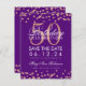 Elégant design "50th Birthday Party" avec Parties scintillant Rose Gold Faux Confetti violet et nom personnalisé et détails texte. Facile à utiliser et facile à personnaliser. Commandez aujourd'hui !
