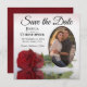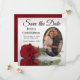 Save The Date Rose Rouge Romantique avec Photo Ovale Mariage