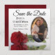 Save The Date Rose rouge romantique sur blanc avec Mariage photo