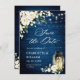 Save The Date Roses blanches Mariage de lanterne en bois bleu