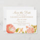 Jolie invitation rose d'aquarelle en rouge, oranges et or. Idéal pour votre mariage de printemps ou d'été. Une belle invitation à la floraison. Vous pouvez modifier la police, la couleur, le placement et la taille du texte en cliquant sur le bouton "Customiser".