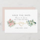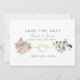 Elégant, moderne, aquarelle, mariage rose floral et floral sauvez l'invitation de date avec coeur de corde or, roses aquarelle, vert eucalyptus et script de calligraphie simple.