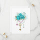 Clé d'or antique aux roses turquoise tendance décorée de feuilles d'or blanc et de perles rose et bleu. Couleur tendance. Rose turquoise. Blanc doré. Tiffany bleu.