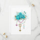 Clé d'or antique aux roses turquoise tendance décorée de feuilles d'or blanc et de perles rose et bleu. Couleur tendance. Rose turquoise. Blanc doré. Tiffany bleu.