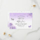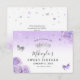 Cherchez-vous des idées élégantes pour des faire-part de date à sauver avec des couleurs de thème de fête argent et violet clair ? Ces modèles DIY simples de faire-part de date à sauver vous donnent la flexibilité créative pour créer votre propre papeterie sur le thème de la princesse royale. L'illustration botanique aquarelle violet poussiéreux pâle créée par Raphaela Wilson représente des roses aquarelles vintage accentuées d'un argent métallisé faux clair, un diadème de couronne de Cendrillon et des confettis de papillon scintillants. Même si ces cartes de faire-part de date à sauver à fleurs lavande sont rédigées pour une fête d'anniversaire pour 16 ans, il est facile de personnaliser le texte pour l'adapter à des mariages lilas, une quinceañera (quinzième / 15 ans) violet clair, une douche de mariée, une douche de bébé princesse pour une fille et d'autres événements précieux. Si vous avez besoin de cartes postales ou d'aimants classiques pour sauver la date, n'hésitez pas à transférer le joli design de papillon rose sur d'autres types de produits de papeterie. Vous pouvez même changer la typographie, qui comprend l'écriture calligraphique tendance et les polices modernes, pour un style alternatif de votre préférence. Avec beaucoup d'espace au verso, vous pouvez également insérer votre propre photo, telle qu'une glamour XV Mis Quince Años ou une photo de fiançailles, etc. Catégorie : papeterie
