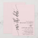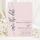 Cette carte de save the date rose blush présente une police de caractères script moderne qui ajoute une touche d'élégance intemporelle. Le design minimaliste garde l'attention sur vos noms et date de mariage, faisant une déclaration claire et élégante.