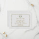 Symbole de l'élégance, de l'abondance et de la noblesse ! Un design unique avec une crête de feuille en faux or Royal, un cadre délicat, des branches d'olivier avec une fleur blanche sur un arrière - plan texturé blanc. Utilisez l'outil Personnaliser pour ajouter vos informations. Pour les articles correspondants, veuillez visiter ma Collection de Mariages Royal Gold Crest Lush Greenery.