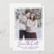 La photo de votre couple est présentée sur cette élégante carte de datation. Un cadre blanc simple lui donne l'importance qu'il mérite. Enregistrer la date est écrit dans un texte moderne et tendance. Deux lignes de texte vous permettent de personnaliser votre message. Conçu pour embellir facilement n'importe quelle photo de style pour n'importe quelle saison. Très facile à customiser.