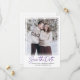 La photo de votre couple est présentée sur cette élégante carte de datation. Un cadre blanc simple lui donne l'importance qu'il mérite. Enregistrer la date est écrit dans un texte moderne et tendance. Deux lignes de texte vous permettent de personnaliser votre message. Le texte au verso fournit plus d'informations. Conçu pour embellir facilement n'importe quelle photo de style pour n'importe quelle saison. Très facile à customiser.