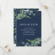 Éblouissez vos invités avec cet élégant enregistrer la date avec de beaux feuilles d'eucalyptus et la typographie moderne. Ajoutez simplement les détails de votre événement sur ce modèle facile à utiliser et ornez cette carte avec votre photo préférée pour en faire une carte unique enregistrer la carte de date.
