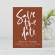 Rouille et blanc Script moderne Simple Calligraphie manuscrite Mariage Enregistrer les cartes de dates Customisez avec votre texte pour le rendre unique