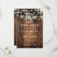 This rustic wedding save-the-date card, featuring string lights and horseshoes can be personalized with your information in rustic typography on a barn wood background. Designed by Thisisnotme©