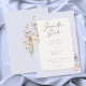 This dusty blue floral wedding save the date card features a soft pastel background, delicate wildflowers, and a handmade torn edge paper look. Perfect for romantic garden weddings, it offers an elegant, modern style with timeless charm for couples seeking a refined wedding design. Created by Simply Farmhouse Press.