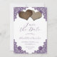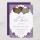 Save The Date Rustic Purple Floral Lace Burlap Hearts Wedding