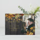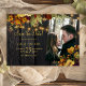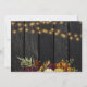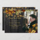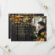 Élégant mariage de automne de l'automne chic enregistrer la carte de date modèle sur le bois de grange brun foncé avec de beaux bouquets botaniques oranges rouillés avec feuilles séchés et feuillage, cordes ou lumières scintillantes, et un script de calligraphie en faux or chic. ++++++++++++++++++++ Facile à personnaliser avec vos détails et deux photos à l'avant et à l'arrière ! ++++++++++++++ Convient pour la fin de l'été ou de l'automne rustique jardin extérieur de campagne ou mariages de grange.