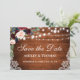 Save The Date Rustique Bourgogne Floral dentelle Bois Enregistre
