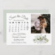 Ce magnifique mariage Save the Date card présente un design boho chic rustique avec un ensemble de feuilles d'eucalyptus à l'aquarelle peinte à la main et de verdure dans les tons menthe, mousse et vert sauge. Le côté gauche de la carte est un calendrier que vous pouvez customiser avec un coeur autour de votre date mariage. Il y a de l'espace pour votre photo, le nom du couple et l'emplacement du mariage. Élégante, élégante et chic, cette carte est un excellent moyen de faire connaître à vos amis et à votre famille la date de votre journée spéciale.