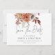 Rustic Terracotta Fall Florals QR Code Mariage. Superbes fleurs avec une ambiance boho dans les tons d'automne de terre cuite et crème et un élégant script set pour Save The Date. Le reste du texte que vous pouvez facilement personnaliser avec vos détails. Ajoutez votre code QR à votre site Web mariage au verso ou supprimez ceci et le texte au verso si cela n'est pas nécessaire. Disponible numériquement ou imprimé.