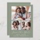 Cette simple et minimaliste carte Save the Date comporte un collage de 3 photos au-dessus des mots "Save the Date" en élégant script blanc d'écriture, suivi des noms du couple, date mariage et ville en sans serif police sur un arrière - plan vert sage. Ajoutez un message plus détaillé avec des informations supplémentaires sur l'inverse.