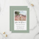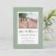 Sage Green Save The Date Fiançailles Photo mariage design dispose d'une belle bordure chic en vert sauge qui comprend une bordure blanche petite élégante. La calligraphie et le script sont gris charbon sur un arrière - plan blanc. Un modèle moderne pour la date et l'année complète le design calligraphique unique. [REMARQUE : L'affichage de la date du mariage tel qu'indiqué, utilise la barre ou la ligne verticale qui se trouve au-dessus du \ sur un clavier ou sur votre appareil intelligent avec les caractères spéciaux. Vous pouvez également customiser avec n'importe quel autre personnage de votre choix.] Customisez avec votre photo fiançailles préférée pour annoncer votre grand jour ! Autres modèles disponibles dans cette suite. (Pour placer au mieux votre photo, utilisez un outil de retouche photo pour centrer et rogner AVANT de télécharger sur le site Zazzle.) E-mail invitationsuites@gmail.com avec des questions ou des demandes personnalisées.