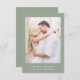 Ces mariages minimalistes et élégants sauvegardent les cartes de date disposent de texte blanc moderne sur un arrière - plan vert sage, avec votre photo personnelle. Un look chic, simple et élégant. Vous pouvez ajouter votre code QR scannable à l'arrière afin que les clients puissent facilement visiter votre site mariage.