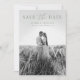 Moderne et élégant, enregistrez la carte datant présente un design minimaliste vert et blanc sauge. Personnalisez avec vos détails de mariage avec le modèle facile à éditer avec une police de script élégante et une police serif classe. Remplacez la photo complète à l'avant par la vôtre par l'option de retirer le filtre noir et blanc. Ensuite, remplacez la photo arrière par la vôtre et mettez à jour l'URL de votre site mariage. Découvrez les articles correspondants dans la collection "Sage Green Modern Elegant".