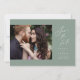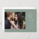 Design minimaliste de script moderne en vert sauge, avec photo de couple, simple et élégant. Super photo enregistrer les cartes de date pour mariage moderne et d'autres événements. Sélectionnez "Cliquez pour customiser plus loin" dans la section "Personnalisez ce modèle" pour ajuster la position et la taille de votre photo.