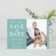 Ce mariage vert et blanc sauge simple et moderne sauvez l'invitation de la date comporte un élégant script blanc sur un arrière - plan vert sage avec votre propre photo. Le texte peut être personnalisé en modifiant les zones de texte. La couleur située à l'envers de l'invitation peut être modifiée dans l'éditeur. Conçu pour vous par Evco Studio © à www.zazzle.com/store/evcostudio #mariage #savethedate #invitation #invitation #weddinginspiration #simple #élégant #moderne #design #populaire #topsellers #topsell #coutume #tendance #mariage hivernal #mariage hivernal #mariage hivernal #mariage fiançailles #papeterie #personnalisée #destination #personnalisée #formelle #classique