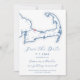 Save The Date Sandwich MA Cape Cod Map Marine Blue Mariage