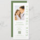 Sauvegarder la date Carte de mariage moderne avec code QR vert sauge et blanc Écriture élégante comprend un fond blanc avec votre photo personnalisée. Personnalisez avec votre texte en modifiant le texte dans les zones de texte fournies. Conçu pour vous par ©Evco Studio www.zazzle.com/store/evcostudio