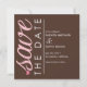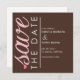 Cette adorable annonce de sauvegarde de date présente la phrase "sauver la date" en rose et blanc à gauche de l'annonce, et votre personnalisation à droite en blanc.