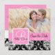 Rose, Noir et Blanc Motif Damassé Sauvegarder la Date avec Monogramme, Initiale et Noms Carte Plate avec votre photo de fiançailles sur le devant et votre texte au dos. Modèle entièrement personnalisable. ELke Clarke©