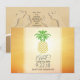 Cœurs d'ananas personnalisés partout cartes de sauvegarde de date se chevauchant au coucher de soleil tropical.
