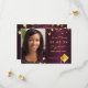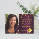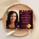 Avant : Ajoutez votre propre photo de taille verticale du diplômé. Un fond dégradé bordeaux, décoré d'étoiles dorées factices. Personnalisez et ajoutez un nom et une date. Le nom et le texte : Sauvegarder la date sont écrits avec un style de lettre manuscrit moderne.