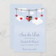 Pour le couple américano-britannique, cette date de sauvegarde, ravira vos invités à l'idée d'assister à vos noces. Avec des cœurs suspendus à une ligne, le cœur central présente une combinaison du drapeau américain et du drapeau britannique en forme de cœur.